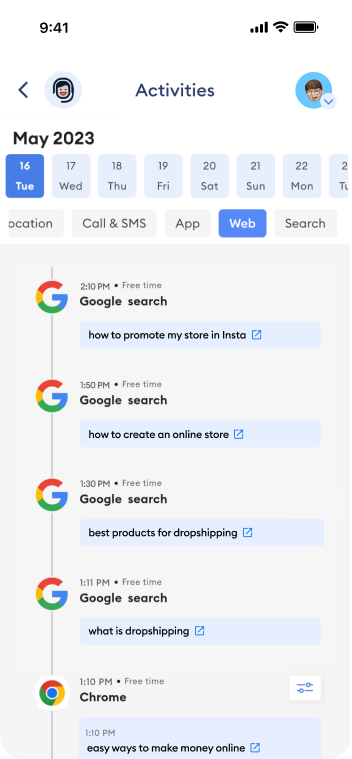 Know what makes your child tick and help them unfold. Superr lets you know what they search for and browse on the internet.
